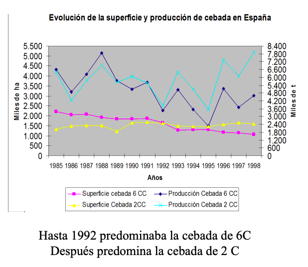 - Hasta 1992 predominaba la cebada de 6 carreras (6C).