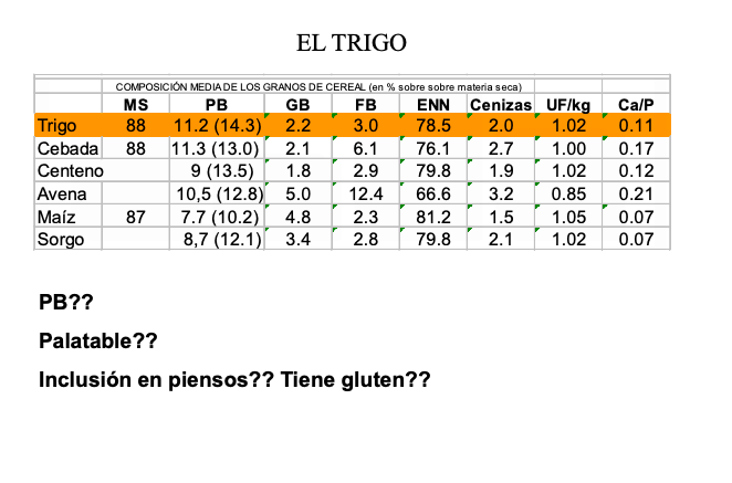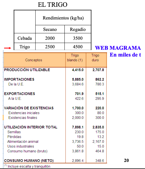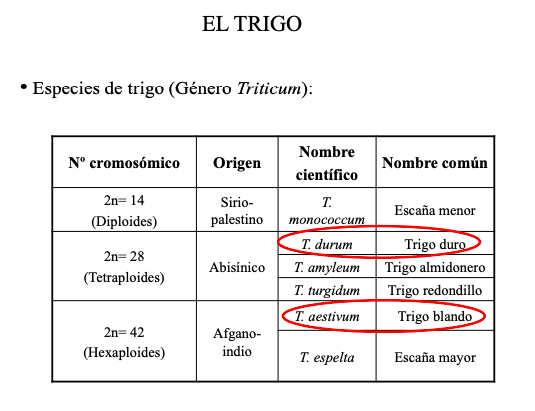 - El trigo duro es menos importante, se usa mas para pasta en elimentación humana y aalgo en animal