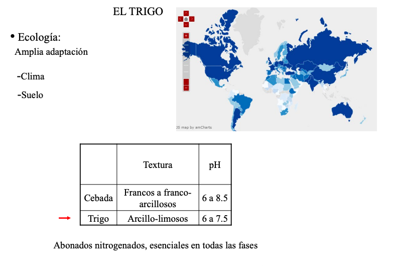 | Trigo | Arcillo-limoso | 6–7,5 |