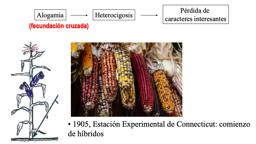 - Líneas puras → autofecundación (homocigosis, menos vigorosas).