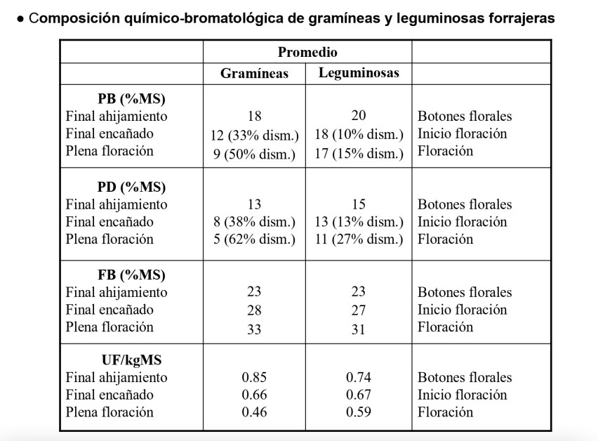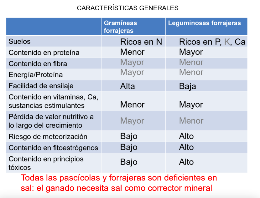 Caracteristicas comparativas gramineas y leguminosas forrajeras