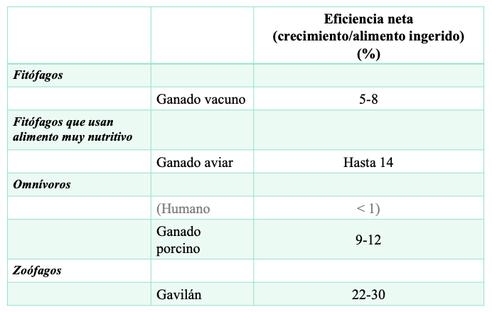 Respecto a las relaciones troficas. Cantidad de energía y materiales que se convierten en biomasa de heterótrofos por unidad de superficie y tiempo: gC·m-2·año-1