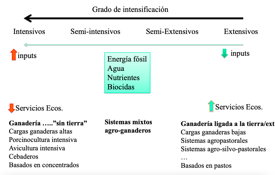 Hay muchos sistemas agrarios entre un sistema intensivo y uno extensivo dependiendo de la cantidad de inputs (insumos) que se ofrezcan y la meta