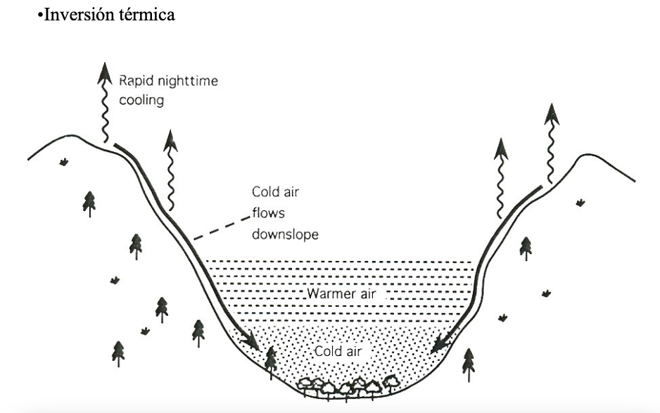 - Intersión termica: En el valle entre dos montañas el aire frio queda abajo y el aire caliente se encuentra a mitad de camino