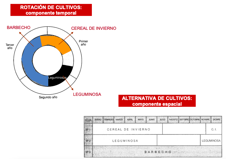 - Guisante o lentejas o yeros (1 año) – Cebada (1 año) – Barbecho (1 año)