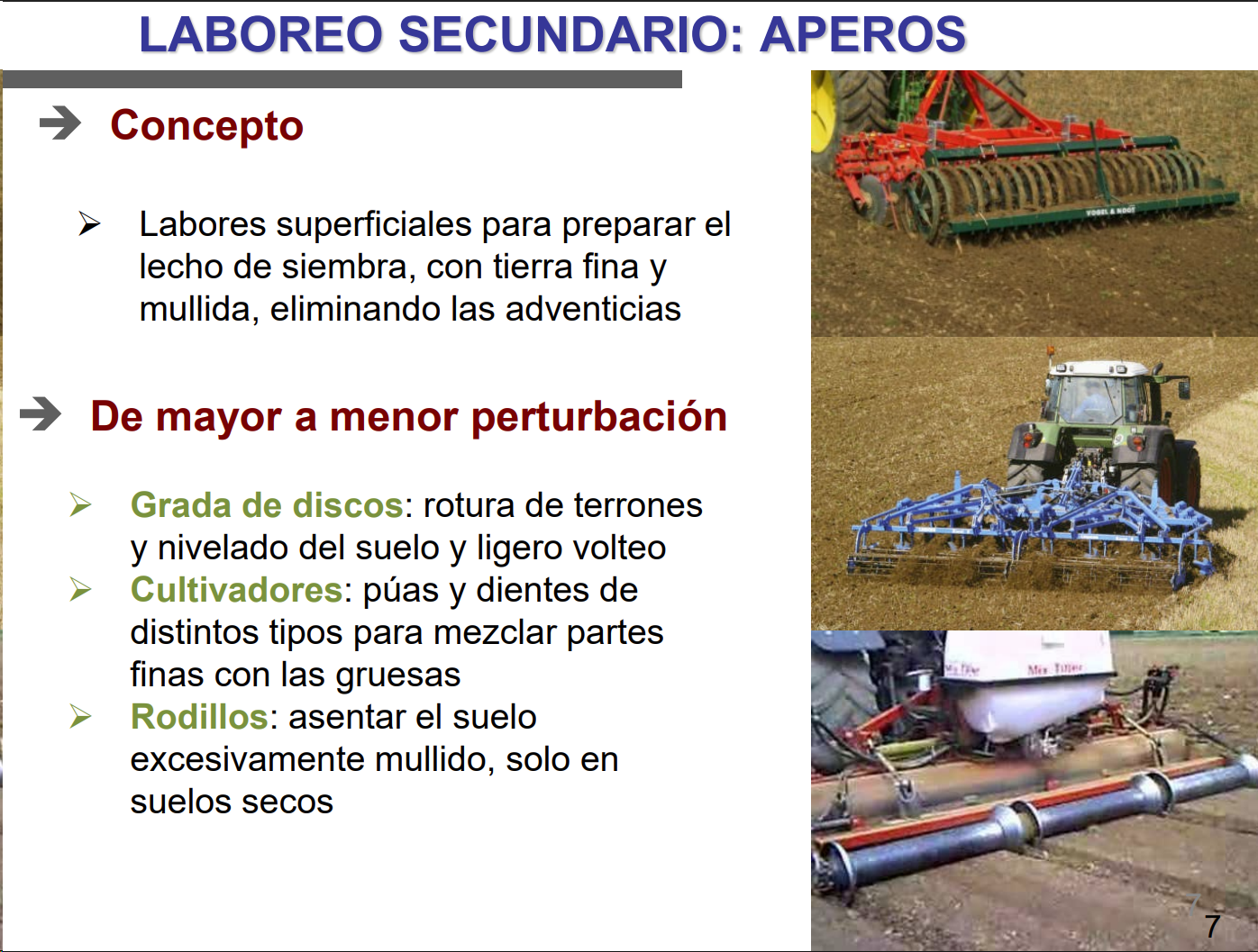 - Imágenes: Cultivadores de rejas, escardadores, rastras de púas flexibles.