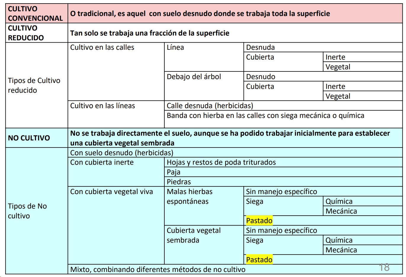 - Cultivo en calles: línea desnuda con cubierta inerte o vegetal.