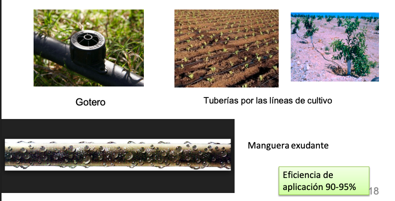 - Riego planta a planta (frutales, viñas, cultivos leñosos).