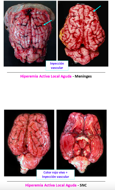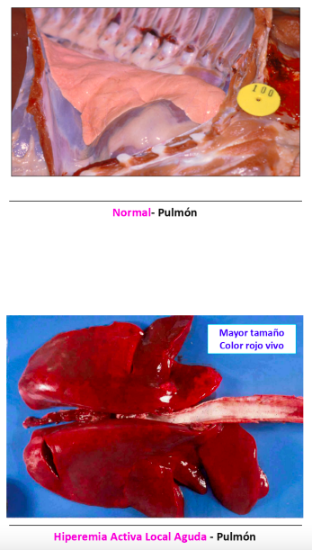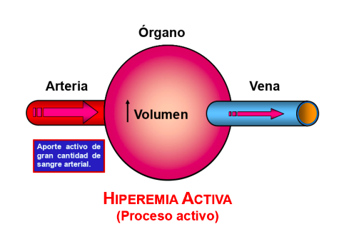 - Hiperemia activa (proceso activo): aporte activo de gran cantidad de sangre arterial.