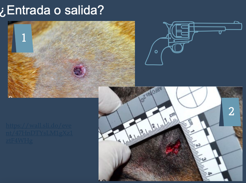- Entrada (Siempre es mas pequeño) (Si es cerca, quemadura de polvora)