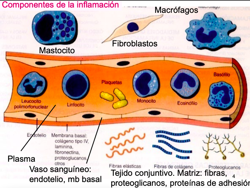 Si un tejido no esta vascularizado no hay inflamación. Los componentes que actuan: