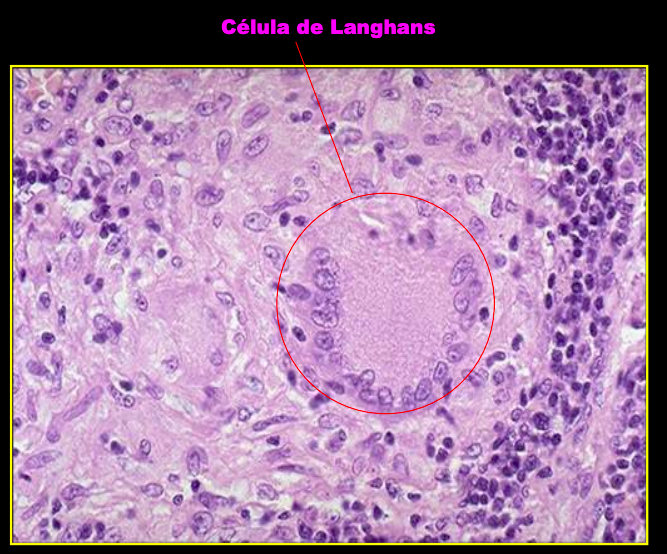 - Formación de células gigantes multinucleadas (Langhans, Touton, cuerpo extraño)