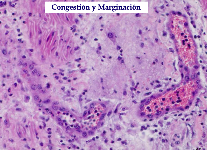 Salida de líquido y proteínas de los vasos en el foco inflamatorio