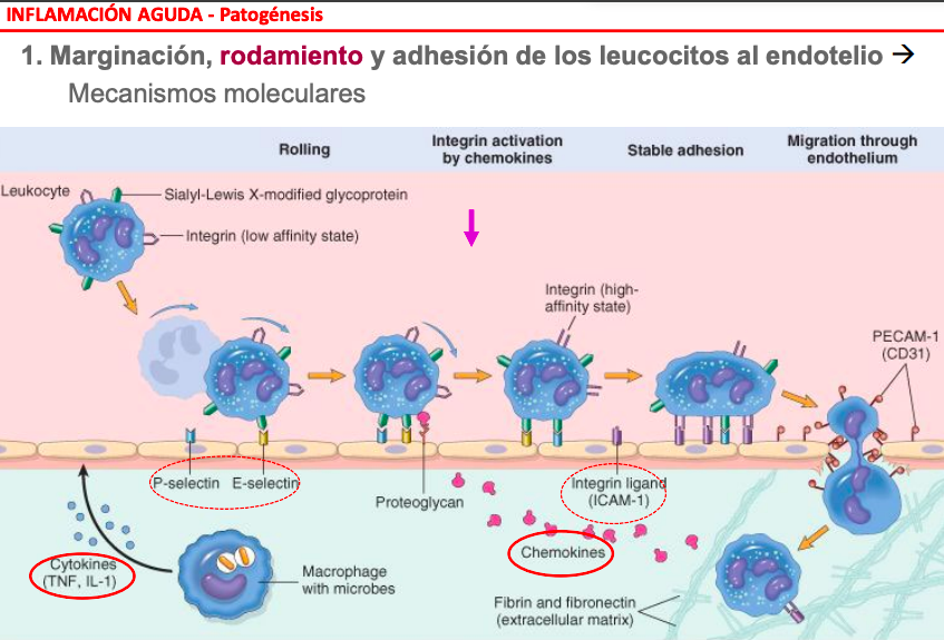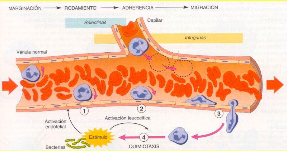 - Migración quimiotáctica: hacia el foco inflamatorio