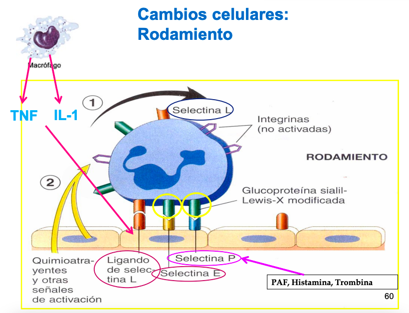 - Rodamiento: unión laxa y transitoria (selectinas)