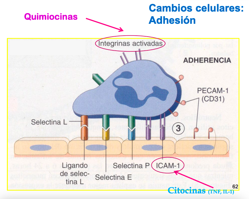 | Adhesión | Integrinas, VCAM-1, ICAM-1 |