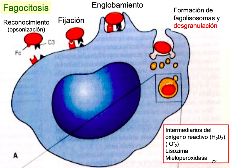 - Reconocimiento: opsoninas (IgG, C3b, IgE)