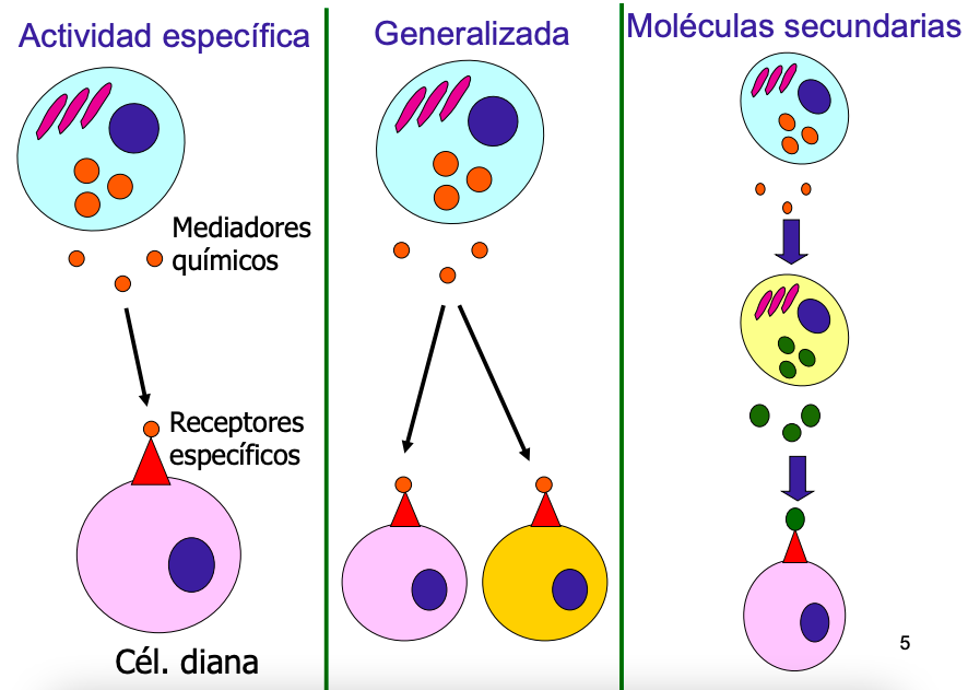 - Mediadores distintos pueden ejercer acciones similares (amplificación de la respuesta) o opuestas (control de la respuesta).