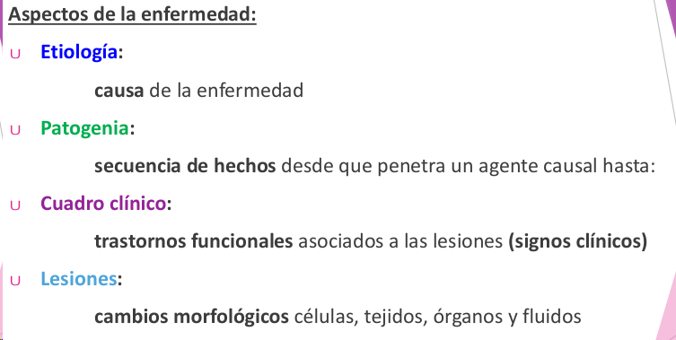 - Lesiones: cambios morfológicos en celulas, tejidos, organos y fluidos
