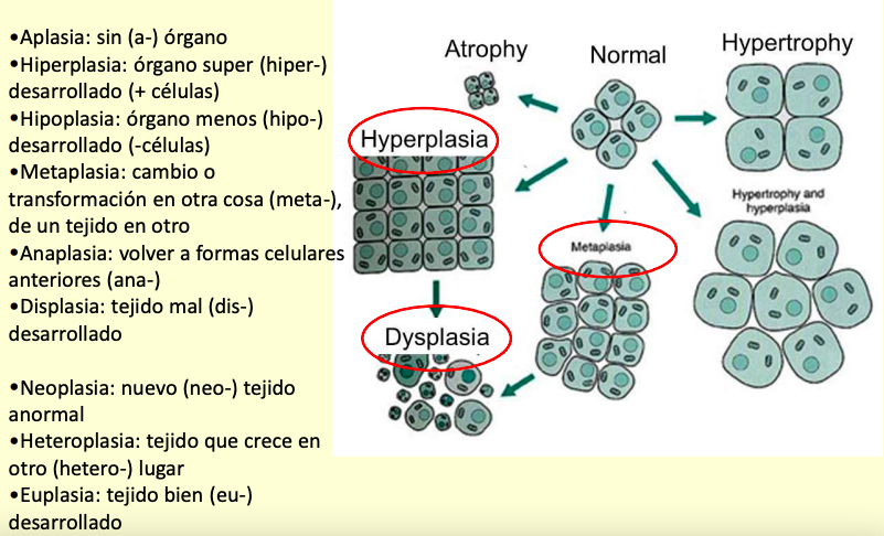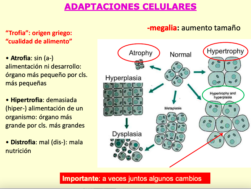 Adaptaciones celulares: atrofia, hipertrofia, hiperplasia, metaplasia, displasia, neoplasia