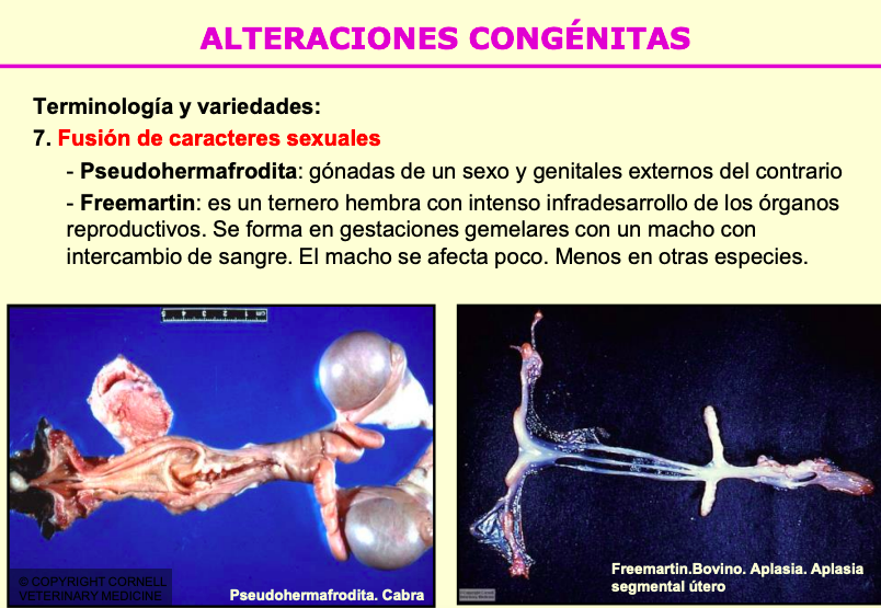Ovotestes o gónadas separadas. Genitales externos ambiguos. Frecuente en cabras y cerdos.
