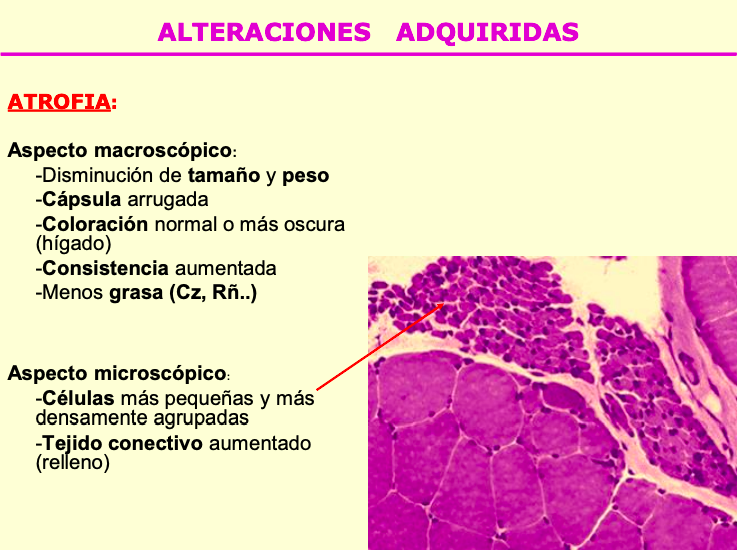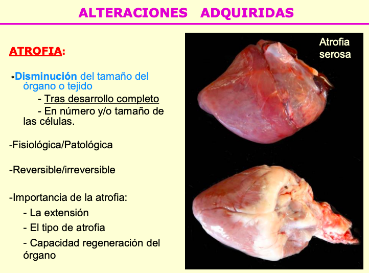 - Atrofia: sin alimentación → órgano más pequeño por células más pequeñas