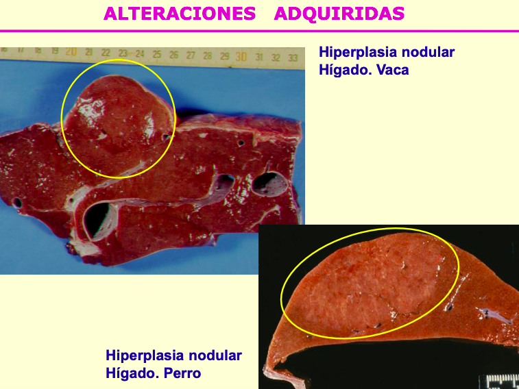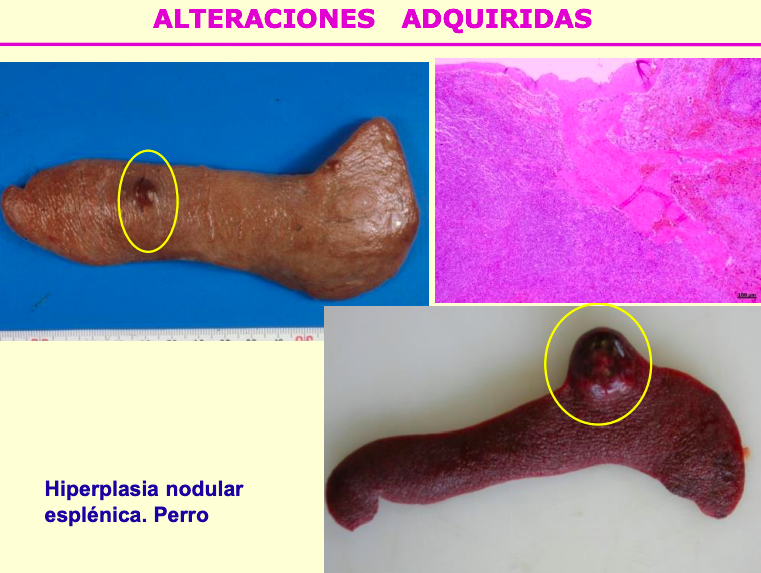 (Imágenes: bocio cabrito; hiperplasia nodular bazo, hígado, páncreas, próstata)