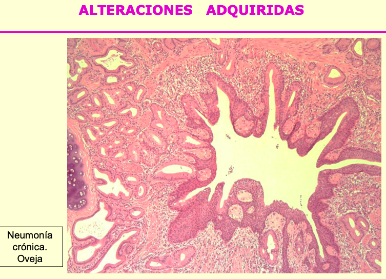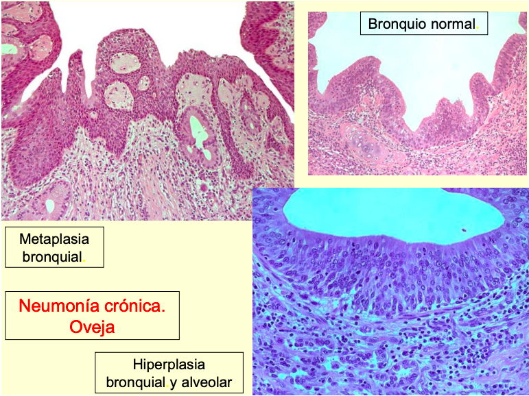 (Imágenes: metaplasia pulmonar en oveja; hiperplasia bronquial/alveolar)