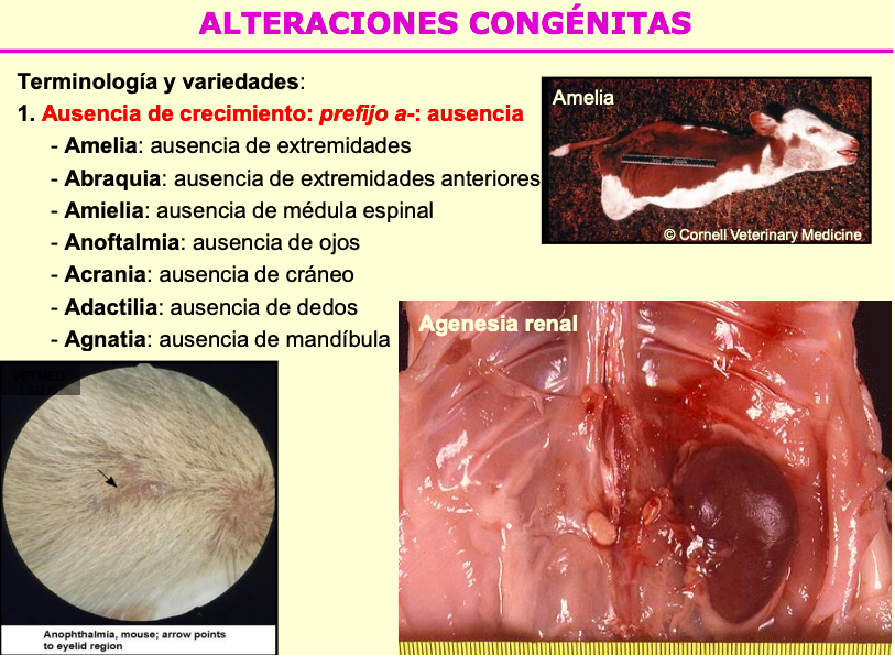 Malformaciones congénitas/hereditarias: agenesia, aplasia, hipoplasia, displasia