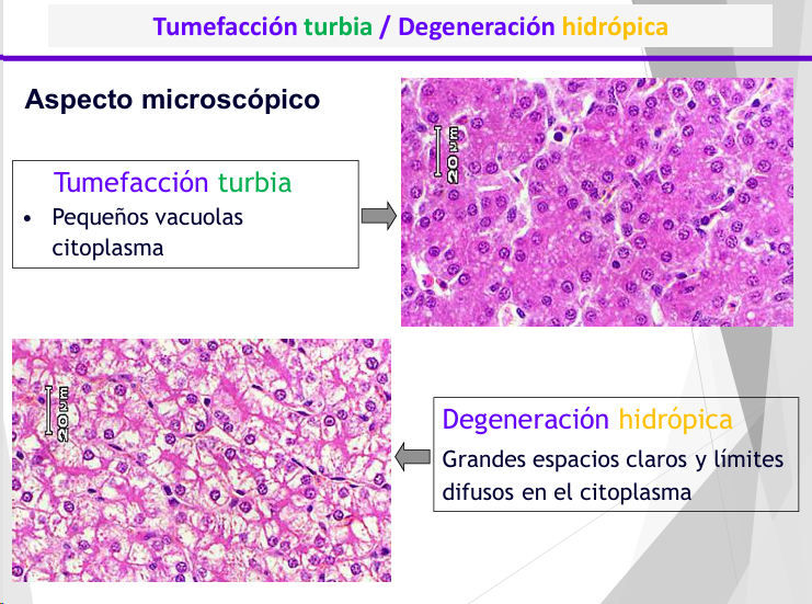 - Tumefacción turbia: Pequeñas vacuolas en el citoplasma