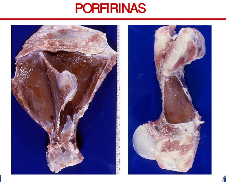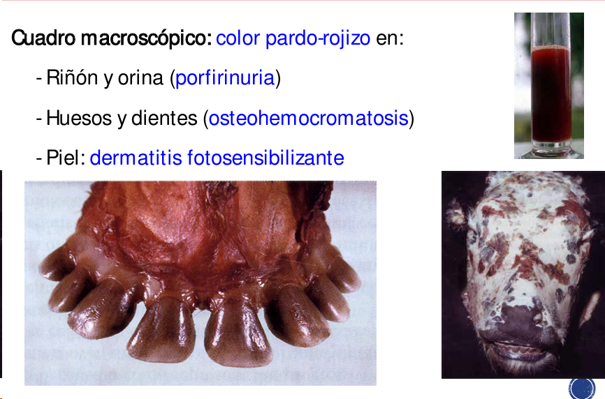 Defecto congenito por falta de enzima uroporfirinogeno-III-cosintetasa Especies afectadas: Bovino, gatos y cerdo.