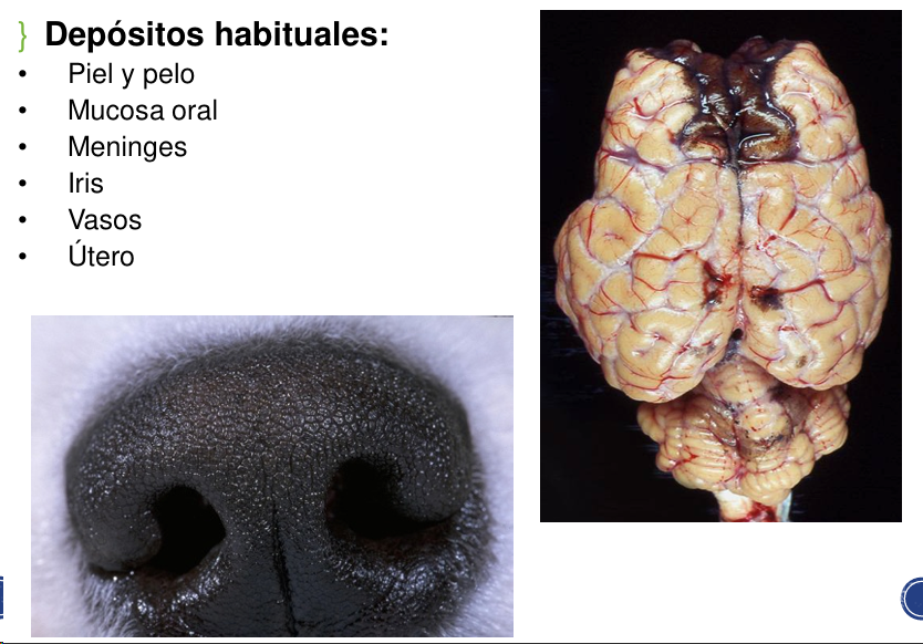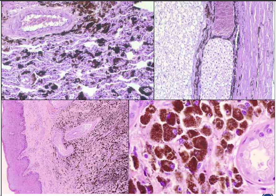 Hiperpigentación: Puede ser congenita y no patologica (por ejemplo, en traquea o en cerebro)