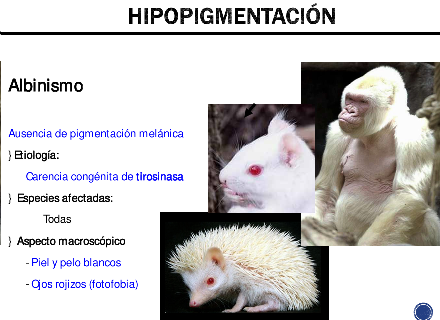 - Aspecto macroscopica de piel y pelo blanco y ojos sin pigmentar.