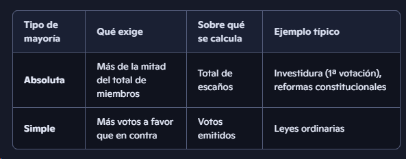 - Requiere la mayoria absoluta en el congreso para su aprobación.