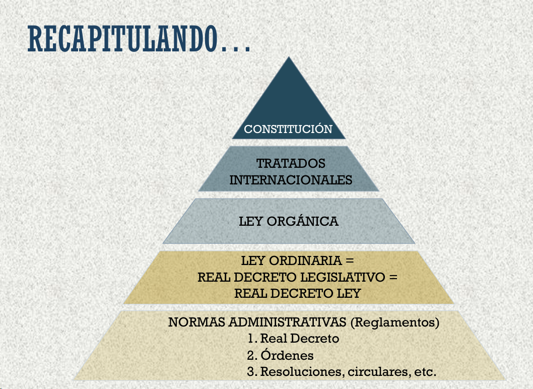 Tener en cuenta que las leyes y normas con rango de ley son superiores a las normas administrativas. Una norma de rango inferior no puede contravenir lo dispuesta en una de rango superior y una posterior deroga la anterior si ambas son de mismo rango.