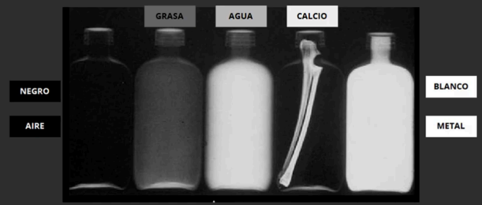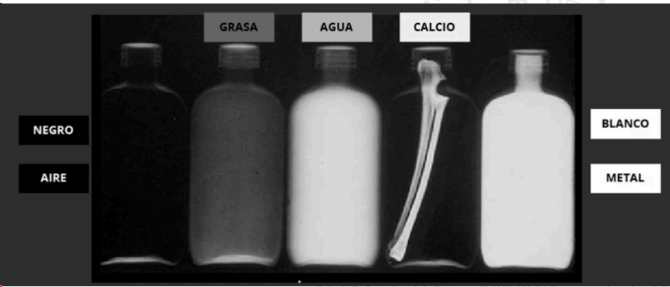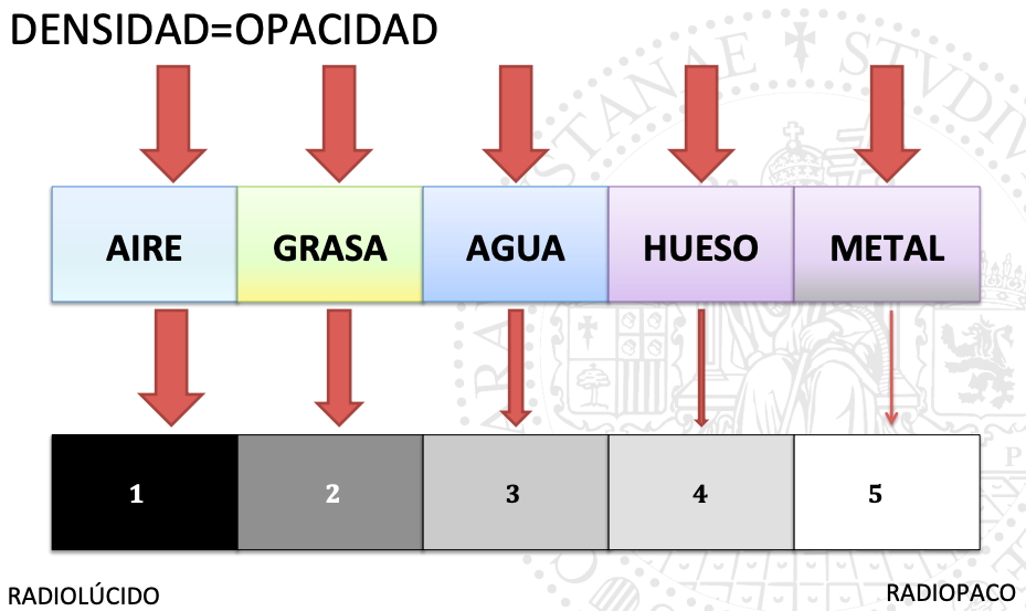 La densidad es igual a la opacidad. recordemos la radiolucidez de distintos elementos: