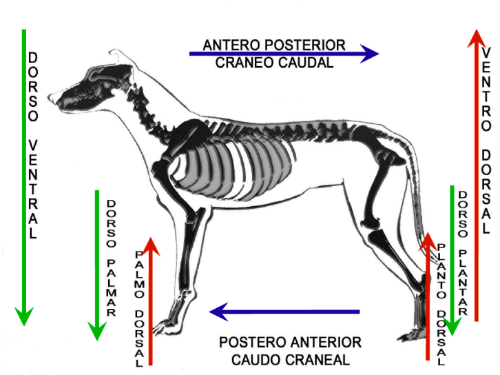 - Se nombra según la dirección que lleva el haz de rayos (por donde entra y por dónde sale) • Se nombran según la dirección que lleva el haz de rayos. Ej: – Dorsoventral/ventrodorsal – Laterolateral (En las laterales, habitualmente se cita la posición (decúbito) en lugar de la proyección