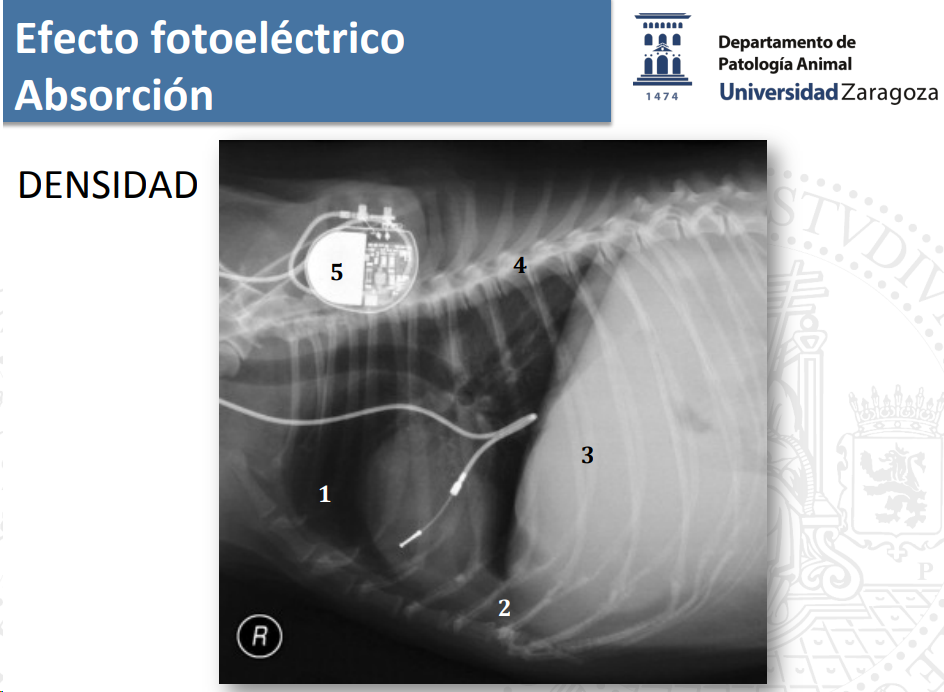 - Densidad (hueso absorbe mas que pulmon), mas denso mas blanco