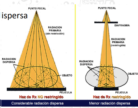 - Así se consigue evitar que lleguen al receptor de imagen los fotones dispersos (los que no vienen directamente del foco del tubo de RX)