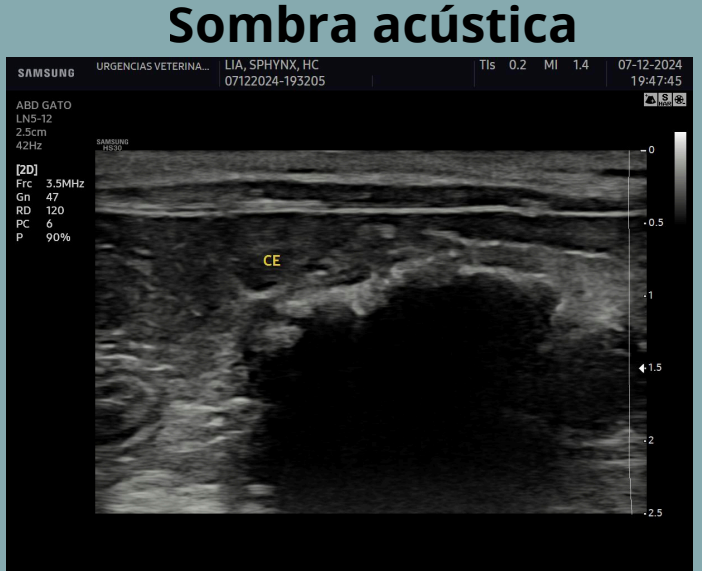 - Imagen MUY HIPERECOGÉNICA (el objeto, anecoico por debajo).