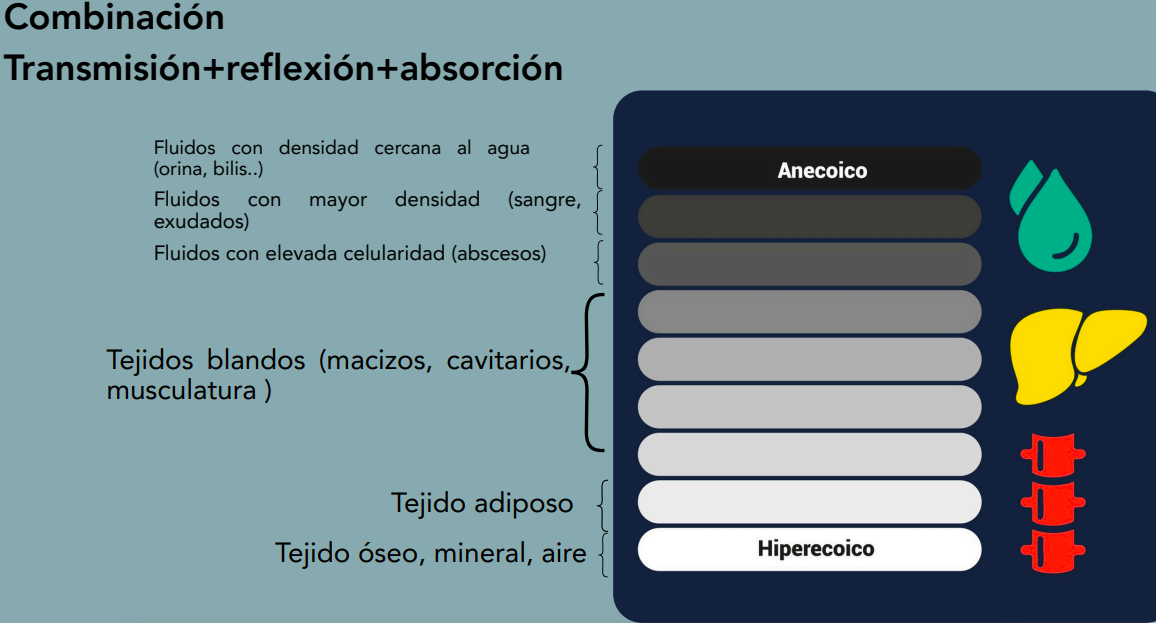 - General: pérdida progresiva de energía del haz de ultrasonido al atravesar los tejidos.