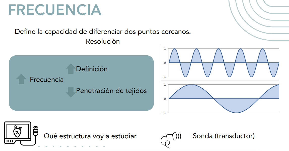 - Altas frecuencias = estructuras en superficie y pacientes pequeños.