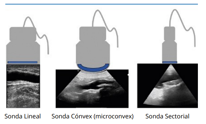 - Lineales: Huella recta. Altas frecuencias. Estructuras superficiales y pacientes pequeños. Microconvex: Huella curvilinea, frecuencias medias. Pacientes medios a grandes. Sectorial: Huella cuadrada. Frecuencias bajas. Ecocardiografía.