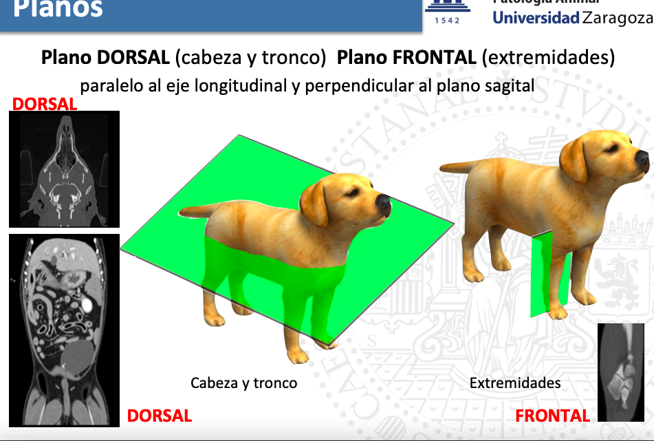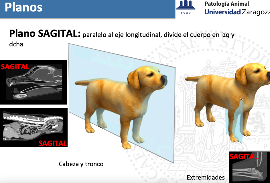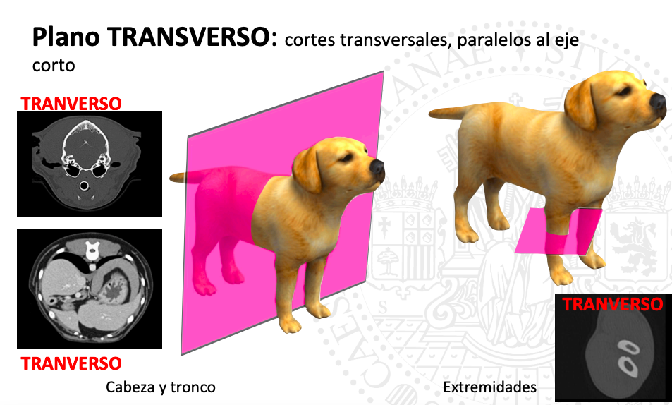 Toma imagenes transversiales y axiales pero se pueden reconstruir todos los planos anatomicos. (No se llaman igual los de humano y veterinaria)