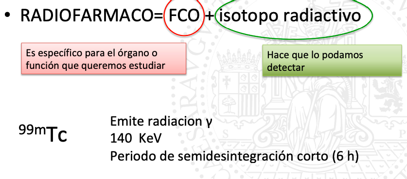 GAMMAGRAFIA: Obtener la imagen de un radiofarmaco • Imagen de la distribución de un radiofármaco en el organismo • RADIOFARMACO = FCO + isotopo radiactivo
