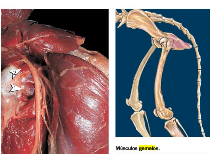 Bajo el biceps femoral (hasta el tendon calcaneo comun) Musculo abductor musculo cuadrado femoral Semimembranoso (dos partes) Semi tendinoso
