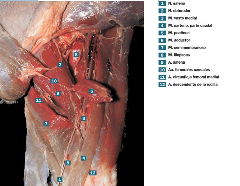 Mas distalmente que el obturador vemos los vasos femorales caudales mediales o proximales del borde del gracillis