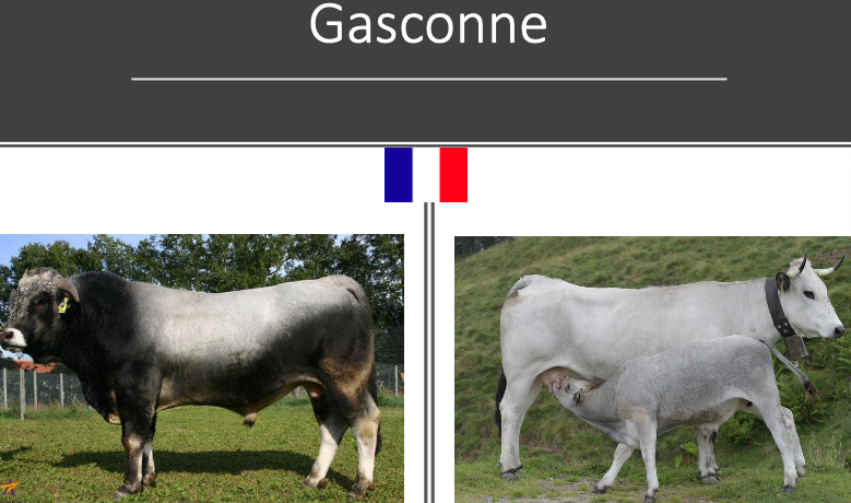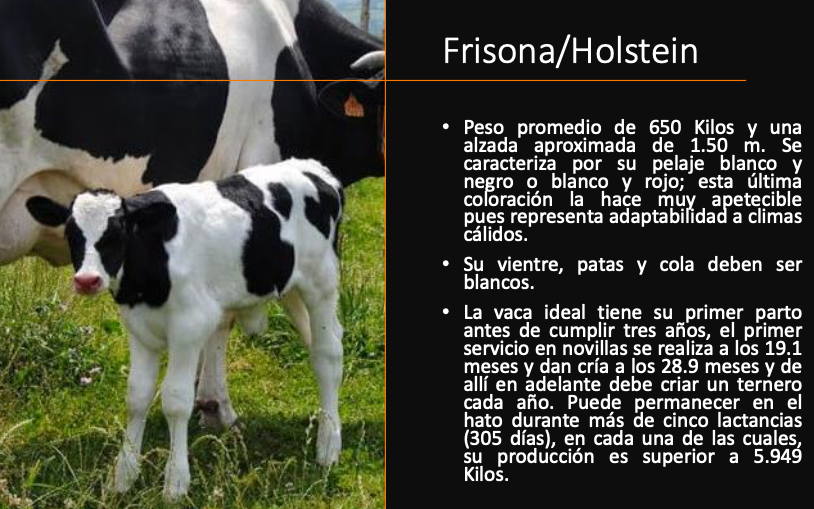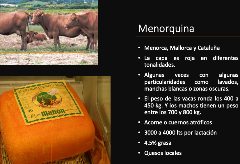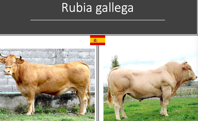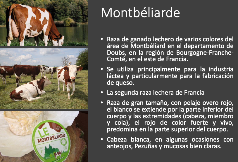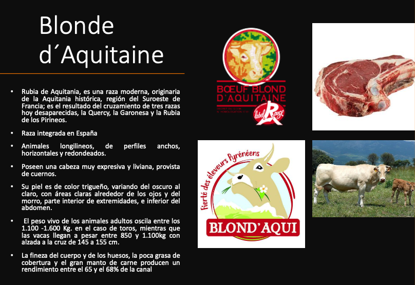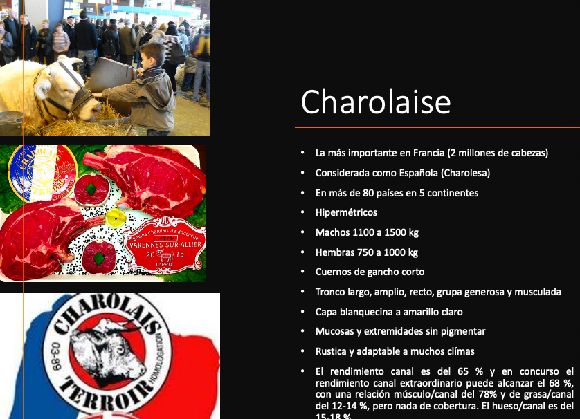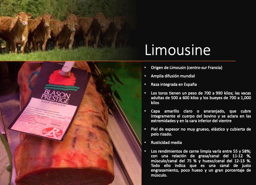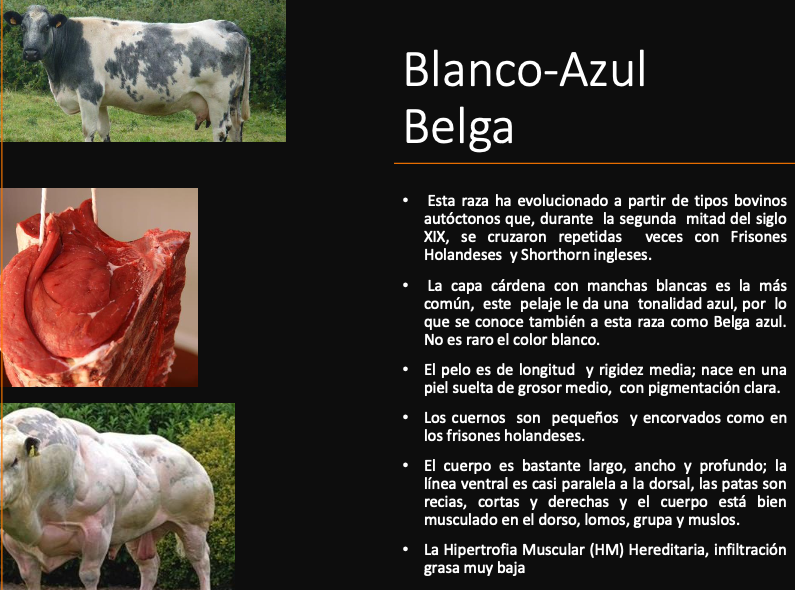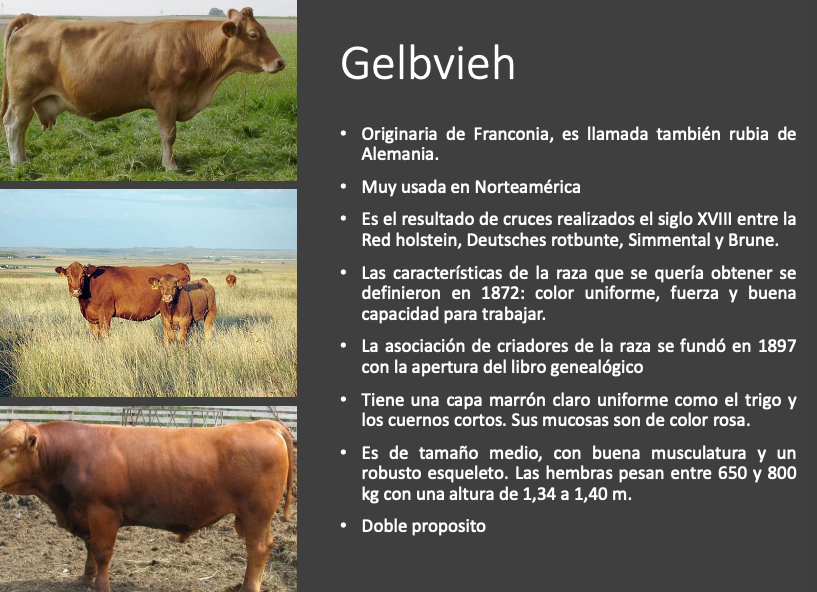 Blonda de aquitania, charolesa, fleckvieh, frisona, limusina, parda