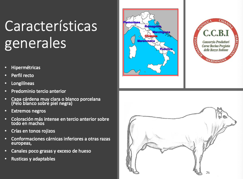 - • Razas italianas (chianina, Marchigiana, Piemontese, Maremmana)