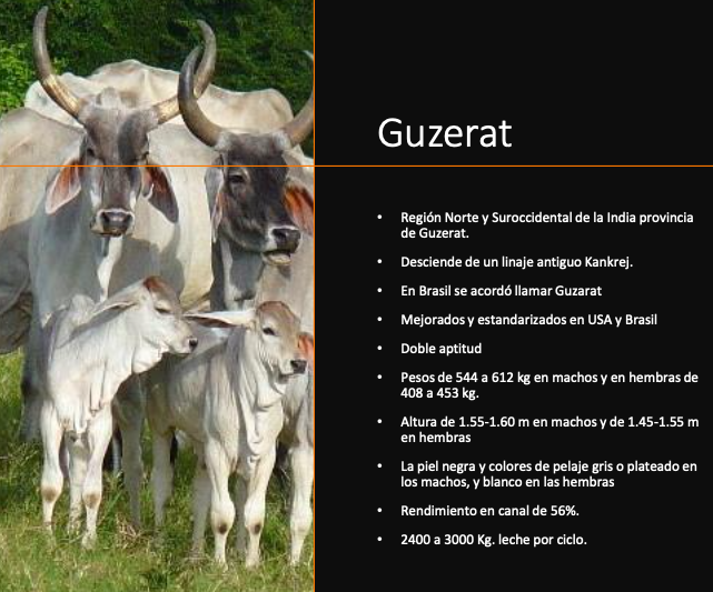 Bos Indicus o cebuinos (Cebu, Guzerat, Gyr, Brahman)